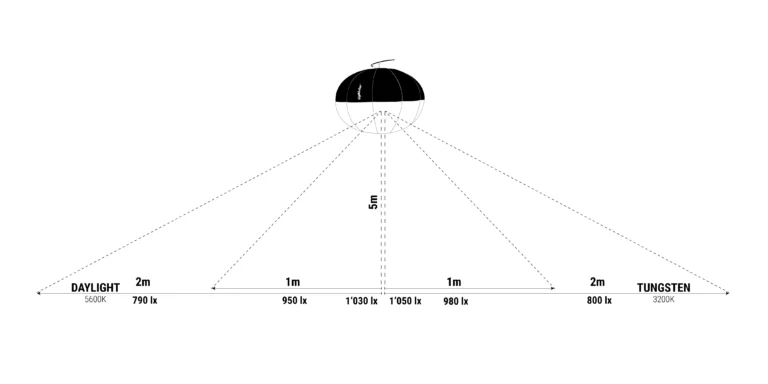 The balloon’s dimmer unit has an integrated air pump. So when you set up the balloon, just with the press of a button, it inflates itself. To keep the balloon filled with air, you can control the air pumps cycle and intensity.
